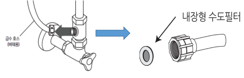 (3) 수도필터(급수 여과망)가 막혀 있는지 확인을 해주시고 막혀 있다면 아래의 방법으로 이물질을 제거하여 주십시오.