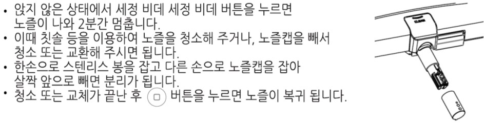 (1) 리모컨 및 수압 조절버튼 설정이 "약"에 있는 확인해 주세요.