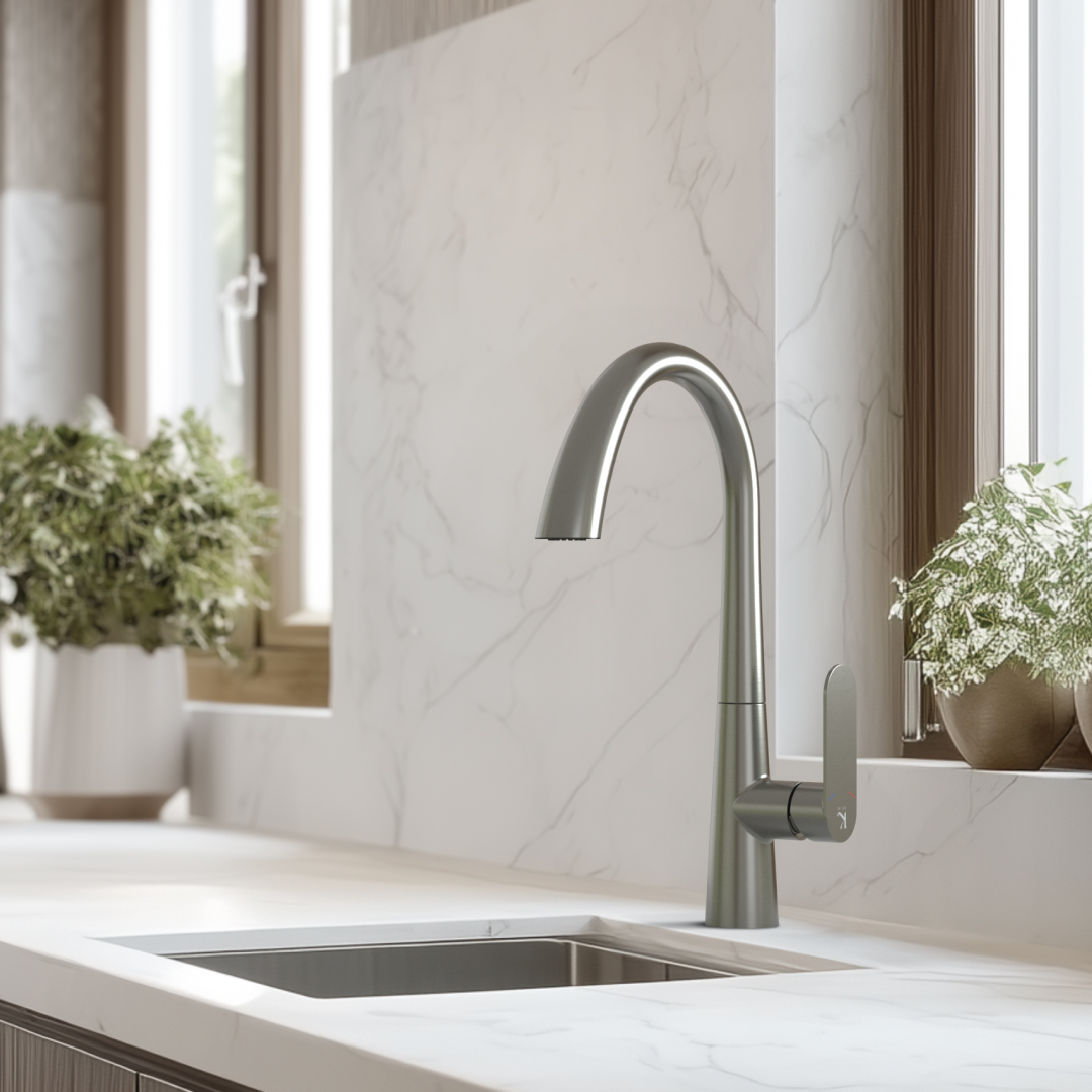 심플하고 직관적인 디자인의 목돌림 앵글밸브 수전